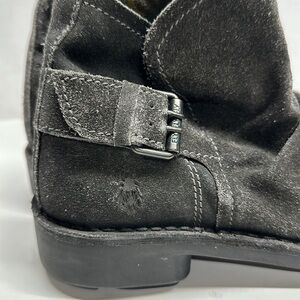 Fly London Ankle Booties Suede Boots Shoes Side Zip Buckle Gray Grey