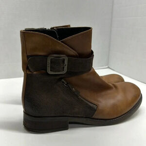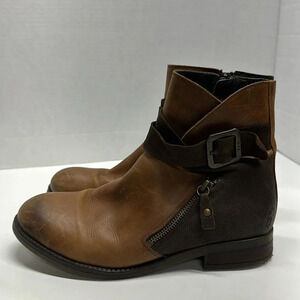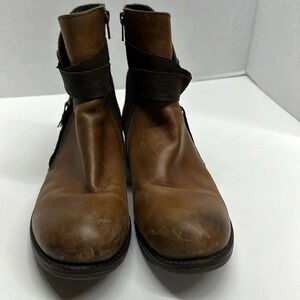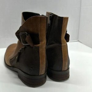 Fly London Ankle Boots Booties Leather Buckle Side Zip Tan Brown Size 40 9 - 9.5