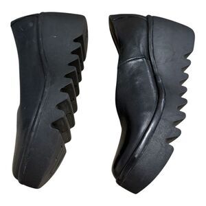 Crafted from premium black Arkansas leather with a sleek, modern profile, these shoes are designed for all-day comfort and bold style. With a wearable 2.5" wedge heel, they're perfect for dressing up or down-from office to weekend. Ok shape needs shoe conditioner to go over the scratches size 35 or 5 in US smoke free dog friendly home