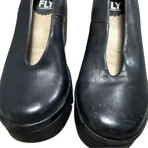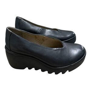 Fly London Beso Wedge Slip-Ons Black Leather 35 5 US