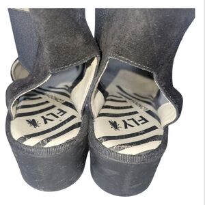 Fly London Biga Wedge Women's Suede Black Peep-Toe Sandals Sz 10 EU 41