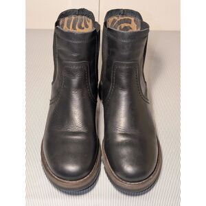 Fly London Black Round Toe Leather Chelsea Ankle Boots, Women Size US7.5-8/EU38