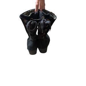 Fly London Black Suede Mid Calf Zip Up Boots with Lace Up Back Sz 8.5