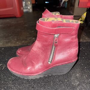 Fly London Black Wedge Booties 41 (10.5) Womens Maroon