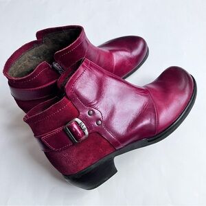 Fly London Boho Red Leather Ankle Boots Booties Size EUR 41 US 10-10.5