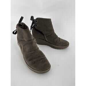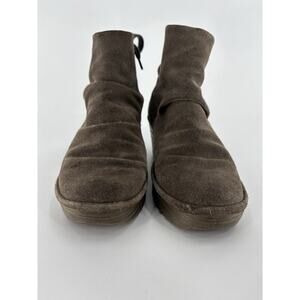 Fly London Botin Booties Womens 39 / 8 Brown Suede Lace Up Back Wedges Ankle