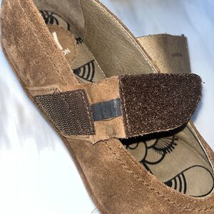 Fly London Brown Suede Wedge Shoes SZ 38 / 8 Mary Jane Strap Comfort Wedge Heels