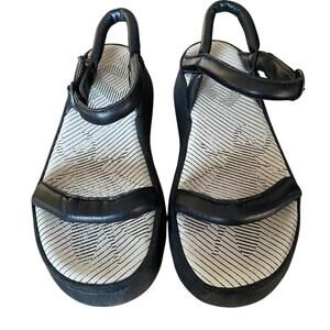 Fly London Ceto Platform Leather Sandals Black Mousse size 40 US 9-9.5 in great condition with minor wear and creasing. See all pics. No box