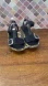 Very Good Condition, Pre-owned, Fly London - "Comb230" Double Buckle Strap Sandal - Black - EU 38/US 7.5-8. Gray gum like rubber sole with wedge heel and grippy sole. 2 black adjustable leather straps with black interior and camo detail on edge of shoe. Silver metal buckles, embossed fly logo on strap. There is a scrap/gouge to strap on the inner right shoe, this does not go to the underside of strap (see last 2 photos). Treads in great shape. Shoes show signs of light wear. Please see phots for details.