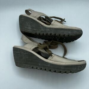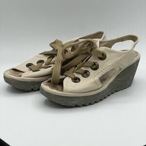 Fly London Cream Yiva Lace Up Wedge Sandals Size 6