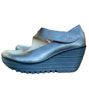 Fly London Gunmetal Gray Yasi Wedge Mary Jane Style Shoes