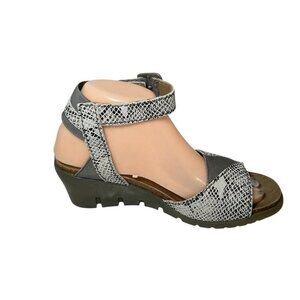 Fly London Imat Snakeskin Open Toe Wedge Ankle Strap Sandals NEW 38