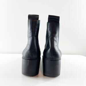 wedge chunky platform heel, ridge sole, rubber, leather, boots, ankle, booties, zip side closure