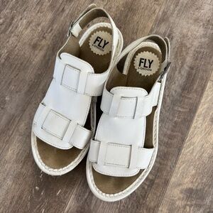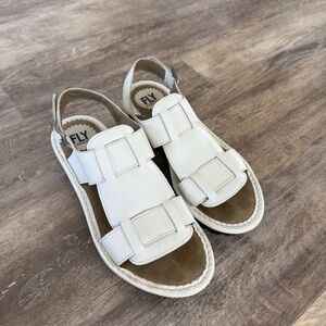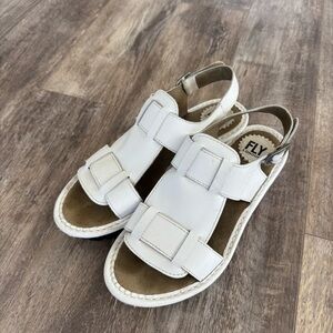 Chic Fly London sandals. Cream color with a modern design. Ideal for casual wear.