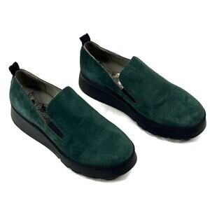 Fly London PECE406FLY Forest Green Wedge Loafer Womens EU 38 US 7.5-8 New $260
