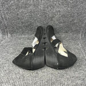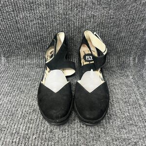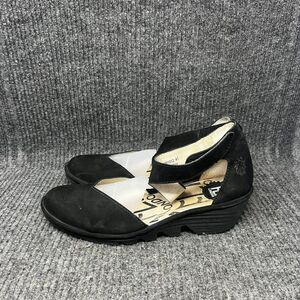 Fly London Pats801FLY Ankle Strap Wedge Sandals Black Leather Womens 41 / 9.5 US