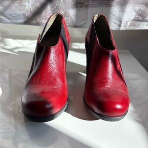 Chic red leather booties with a bold design. Perfect for adding flair to any outfit. Real leather, quality made.