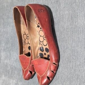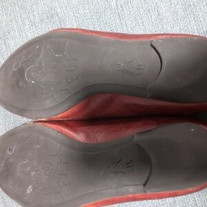 Fly London Red Leather Flats Cut Out Pointed Toe Made in Portugal EU 38 US 7