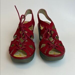 Fly London Red Strappy Wedge Sandals with Gladiator Style Size 37