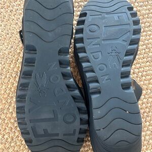 Fly London Rese Black Casual Comfort Summer Strap Wedge Sandal Sz EU 39