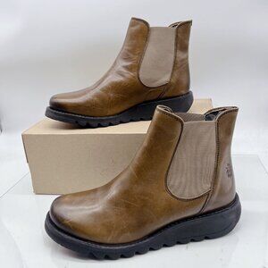 Fly London Salv Platform Chelsea Ankle Boots Comfort Brown Leather EU 42 US 11