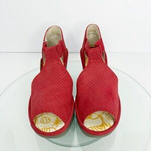 Fly London Sandal Platform Wedge Open Toe Red Women's 7/38 Perforated Leather