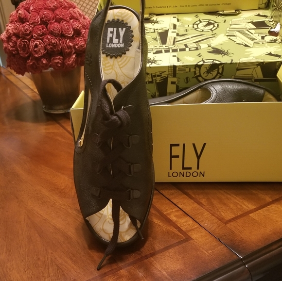 Fly London Sandals, black leather, size 41, in the box, excellent condition