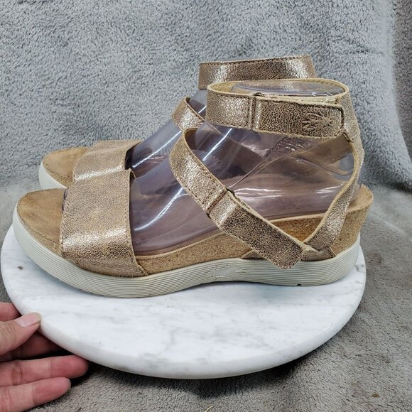 Fly London Shoes Womens EU 40 US 9-9.5 Gold Leather Wink Ankle Strap Sandals