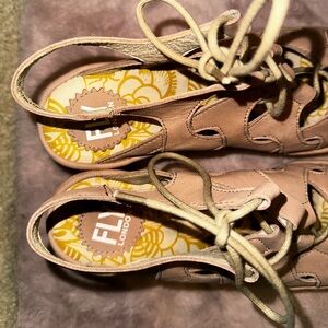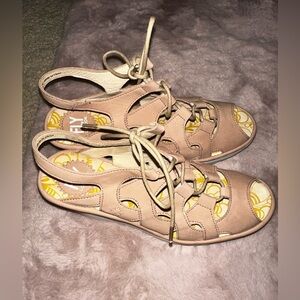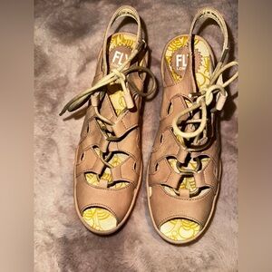 Fly London Stylish Tan lace up Wedge Sandals 39 8 8.5 summer vacation spring