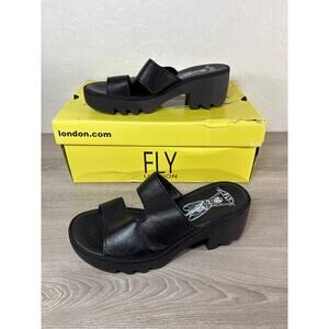 Fly London TECH493FLY Mousse Women's Black Leather Slip on Sandals Size 38 US 7