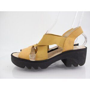 Fly London Taji Sandal Size 42 11 Mustard Yellow Slingback Platform Chunky Block