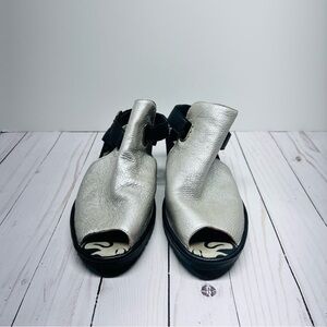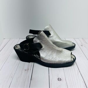 Fly London Wena Silver and Black Slingback Mules Size 41