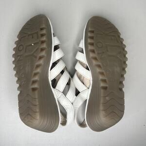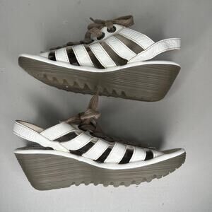 Fly London White Yito Wedge Lace Up Dress Sandals Size 42