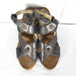 Fly London Women's EU39 US8-8,5,5 Metallic Gray Leather Platform CrisCross Slingback Sandals.