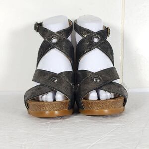 Fly London Women's 39 US8,5 Metallic Leather Platform CrisCross Slingback Sandal