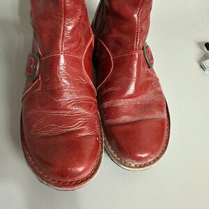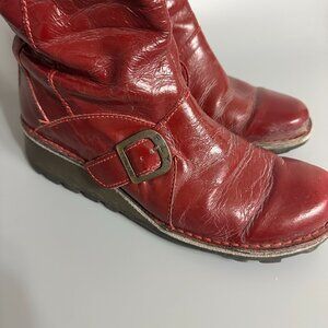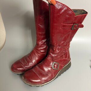 Fly London Womens Boots MES 2 Wedge Calf Length Leather EU 38 US 7.5-8 Red