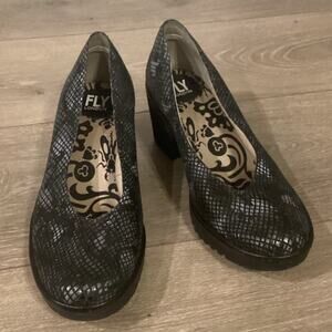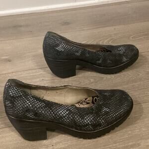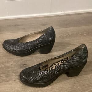 Fly London Womens Leather Pump EU 38W 38 US 7 7.5 Loafer Mary Jane Snake Skin