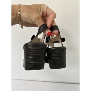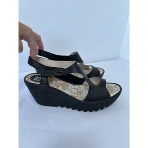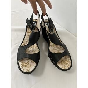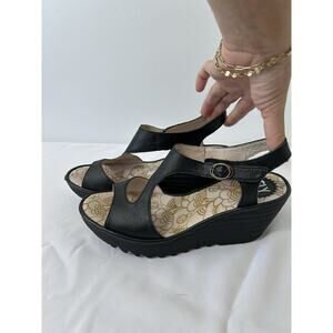 Fly London Women's Sandals Black Leather Platform Slingback Wedge Size 40/9.5 YOX