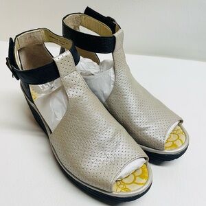 Fly London Womens Yall Platform Wedge Sandals Borg Silver Black Open Toe 9.5/10