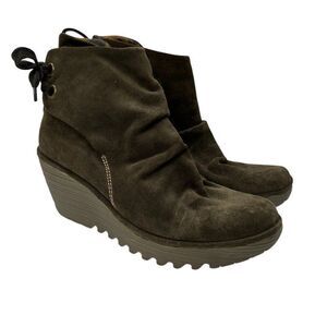 Fly London Women's Yama Suede Wedge Ankle Boots Olive Green Size 9