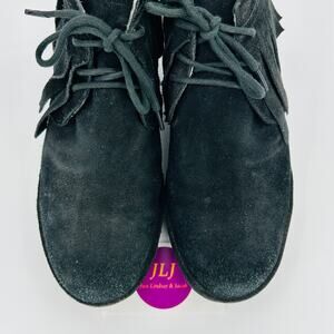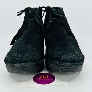 Fly London Women's Yank Black Suede Fringe Wedge Ankle Booties P500774000 Size 40/ 9-9.5 US