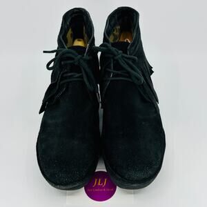 Fly London Women's Yank Black Suede Fringe Wedge Ankle Booties Size 40/ 9-9.5 US