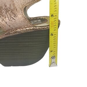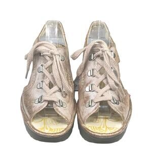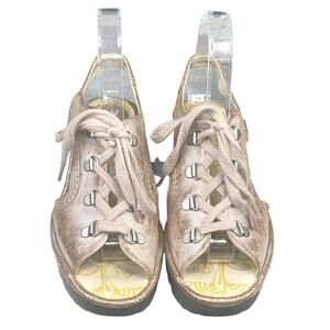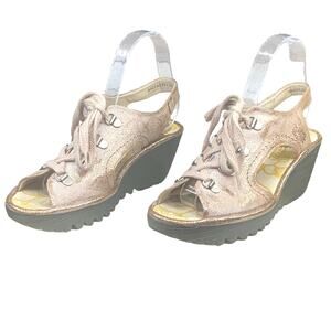 Fly London Women's Yifa Gold Lace Up Wedge Sandal Size 38 US 7.5/8