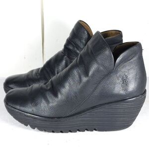 Fly London Women’s Yip Mousse EU40 US 9-9,5 Black Leather Side Zip Wedge Ankle Boots
