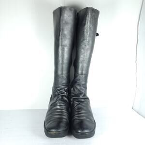 Fly London Womens Yust US9,5 EU40 Metallic Gray Leather Zip Wedge Riding Boots .
