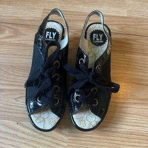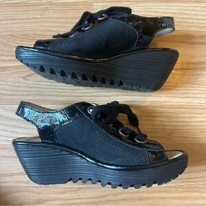 Fly London YLFA Black Leather Comfort Sling Back Wedge Sandals Women’s Size 38