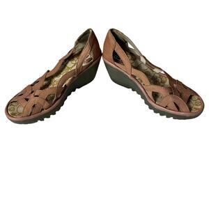 Size 39, US 8 - 8.5 Fly London Yadi wedge sandals in rose. In nealry new condition. First photo is accurate color.