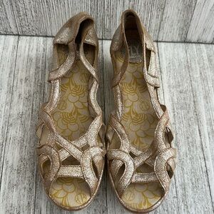Fly London Yadify Gold Cut Out Leather Platform Wedge Sandal
