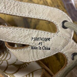 Condition - Very good, pre-loved condition. Slight spots on the footbeds. Leather distressing is intentional.