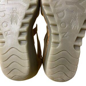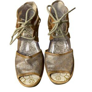 Fly London Yafi Lace Up Leather Wedge Sandals Brown Tan Sz 41 (EU)